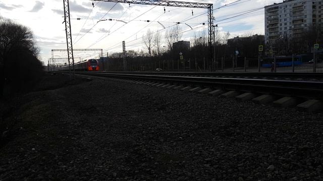 28 марта 2019 года в 14:49 перегон Люблино-Царицыно Курское направление Московская железная дорога Electric trains ED4M-0043 and "Lastochka" 7 cars ES2G-100 March 28, 2019 at 14:49 Lyublino-Tsaritsyno stage Kurskoe direction Moscowskaya railway