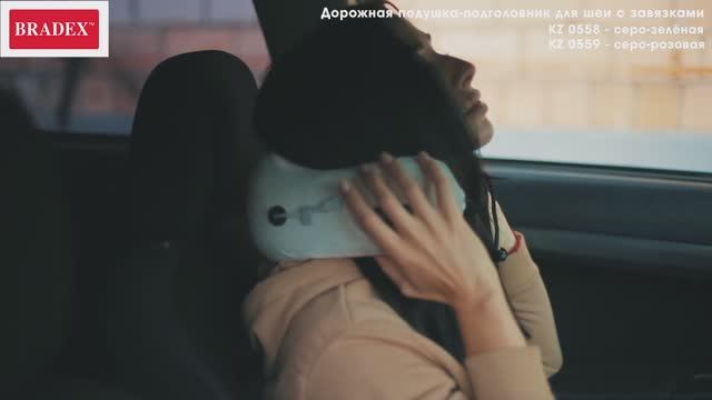 Дорожная подушка-подголовник для шеи с завязками, серо-зелёная kz-0558
