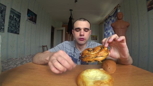МУКБАНГАСМР ВЫПЕЧКА - ВАТРУШКИ, БУЛОЧКИи КЕФИР УЖИНОБЖОР ЕДА EATING ASMR Mukbang#205