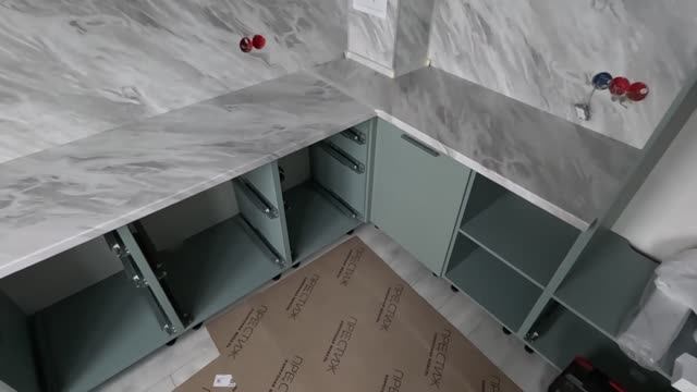 Зелёная кухня (5). Стяжка столов, столешница, стеновые панели.