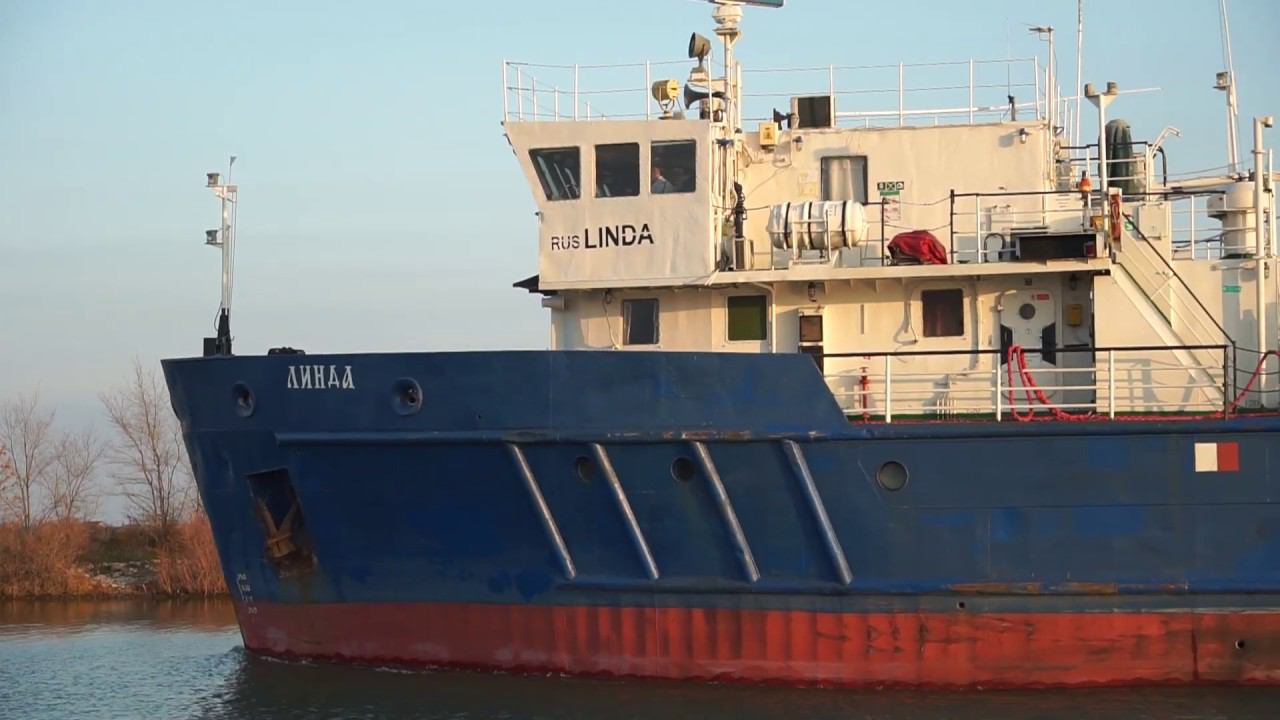 Теплоход Линда идет в сторону Волги, следуя в Астрахань