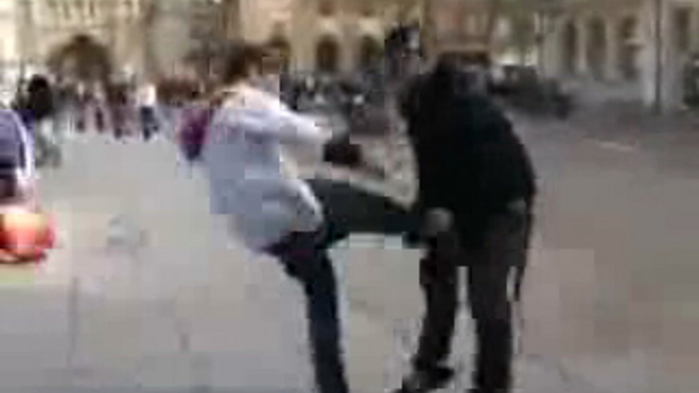 Крепкий парень, выдержал не один десяток ударов... Странный прикол, но толпа на площади собралась приличная.