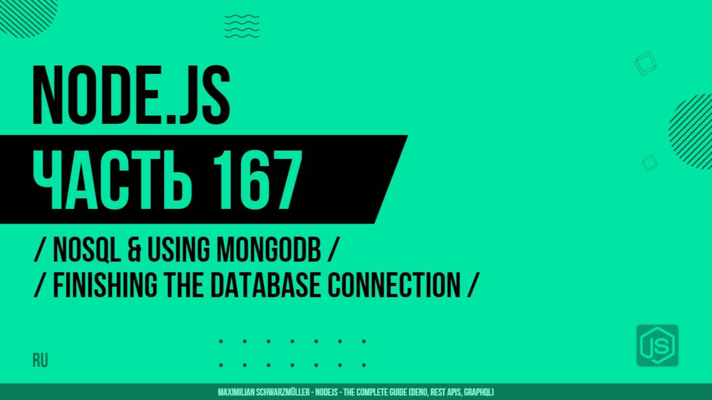 Node.js - 167 - NoSQL и использование MongoDB - Завершение настройки соединения с базой данных