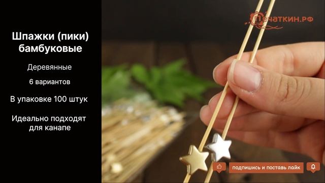 У нас Вы можете приобрести шпажки (пики) бамбуковые, которые станут незаменимым помощником в приготовлении блюд. Упакованы в индивидуальную упаковку по 100 штук. Продаются от 1 упаковки. Подробное описание и цены на нашем сайте: http://www.pechatkin.org/dposuda/pika_bambuk.html Доставка по всей России.