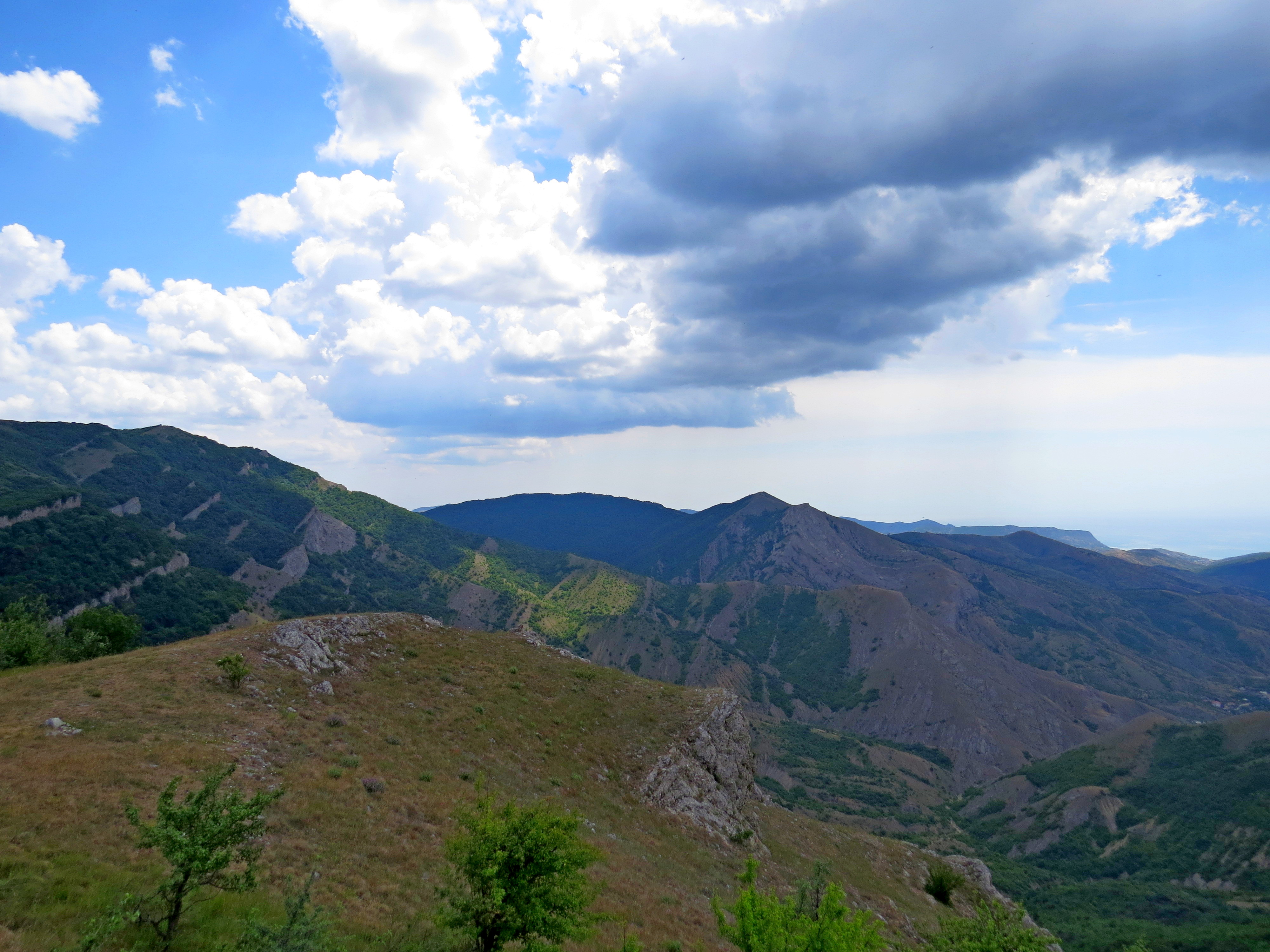 Набежали тучи и виды стали суровее. Вид с вершины Кокташ. Горы Судака до Алушты.