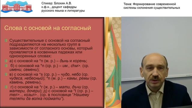 Блохин А.В. Видео-лекция «Формирование современной системы склонения существительных»