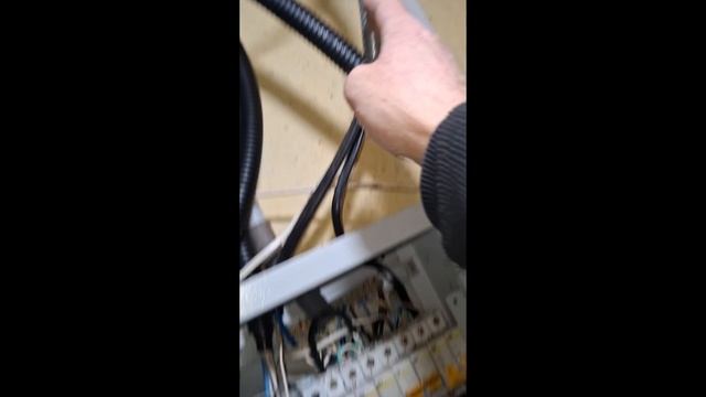 A dog named Jesse, a half-breed Akita Inu and a German Shepherd, looks at the option of electricity supply at home A-frame (Собака по кличке Джесси, метис пород Акита-ину и Немецкая овчарка, смотрит на вариант электроснабжения (подключение медно-алюминевых наконечников СИП при монтаже вводного э/щита в гараже согласно ТУ) дома А-фрейм)