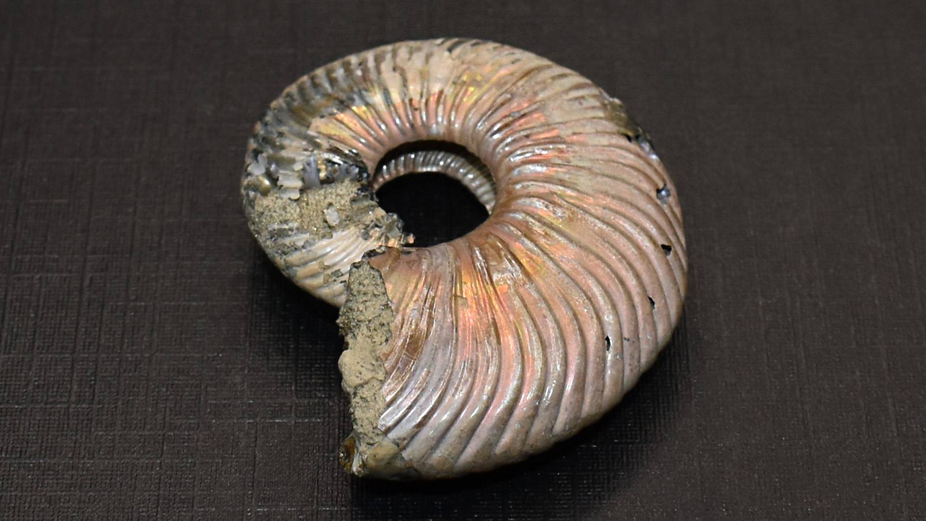 Аммонит пиритозамещённый. С бронзовым оттенком, имеет переливы на поверхности пирита. Место добычи - Ульяновск. 100% Природный, без облагораживания. Размер: ~36 х 29 х 10 мм. Общий вес: 20 г К716-3