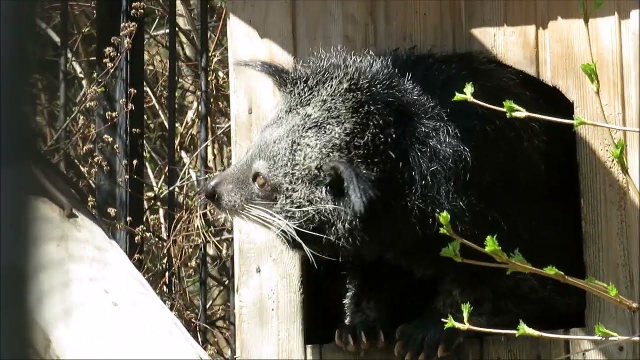 В Новосибирском зоопарке бинтуронги содержатся уже восемь лет. Впервые этого зверька зоопарк получил из Берлина в 2010 году. Через два года самцу подобрали пару. Самку привезли из Ташкентского зоопарка. Бинтуронг — млекопитающее семейства виверровых отряда хищных, единственный вид монотипного рода Бинтуронги. Из-за внешнего сходства ранее причислялся к семейству енотовых, однако на самом деле является своеобразным по своей форме видом виверровых. Неуклюжие и коротконогие животные, зачастую туристы их называют «кошачьими медведями» из-за внешнего сходства строения тела с кошачьими и манерой передвижения по земле как у медведя. Бинтуронги выделяют запах, похожий на запах попкорна. Бинтуронги активны по ночам и живут в основном на деревьях. они хорошие пловцы и ныряльщики.