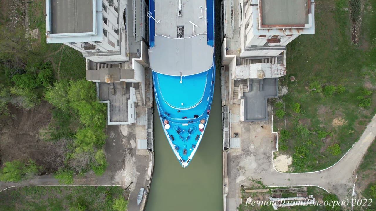 Теплоход выходит из 3го шлюза ВДСК. Волгоград.
