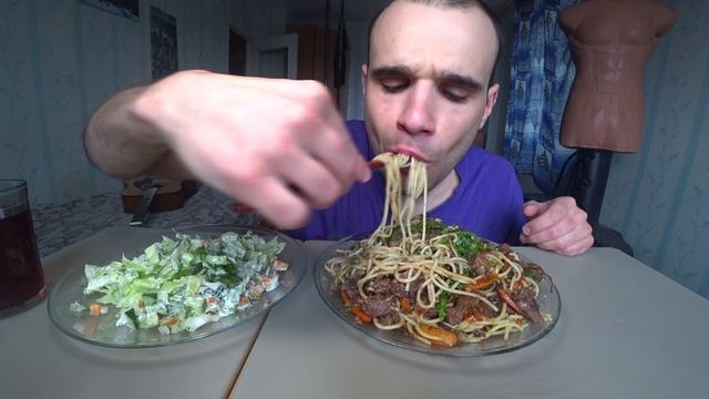 МУКБАНГ АСМР НАРЕЗКИ ЛУЧШЕЕ 1 - СПАГЕТТИ С ТУШЕНКОЙ/ САЛАТ EATING ASMR Mukbang 07. 08. 2023