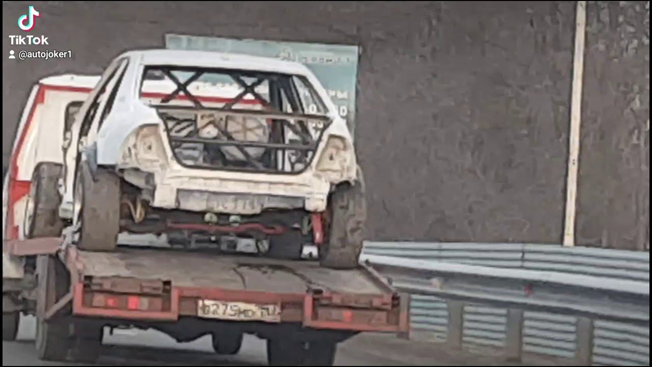 в этом ролике показан спортивный автомобиль с каркасом безопасности который перевозят на эвакуаторе