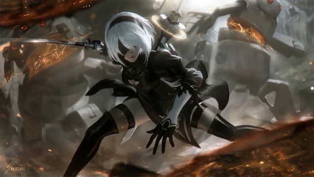 2B с катаной против машин NieR: Automata Живые Обои