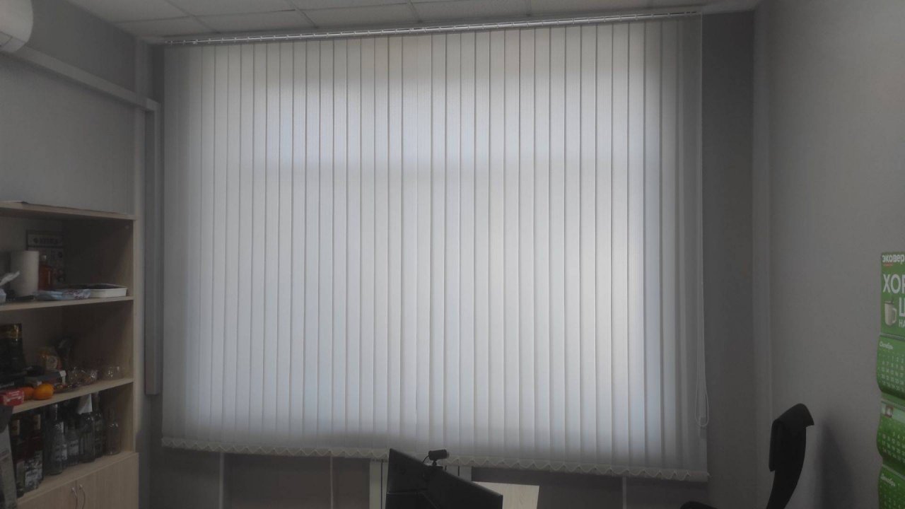 Серые вертикальные жалюзи на большие окна идеальное решение в офисное помещение. Функциональные.