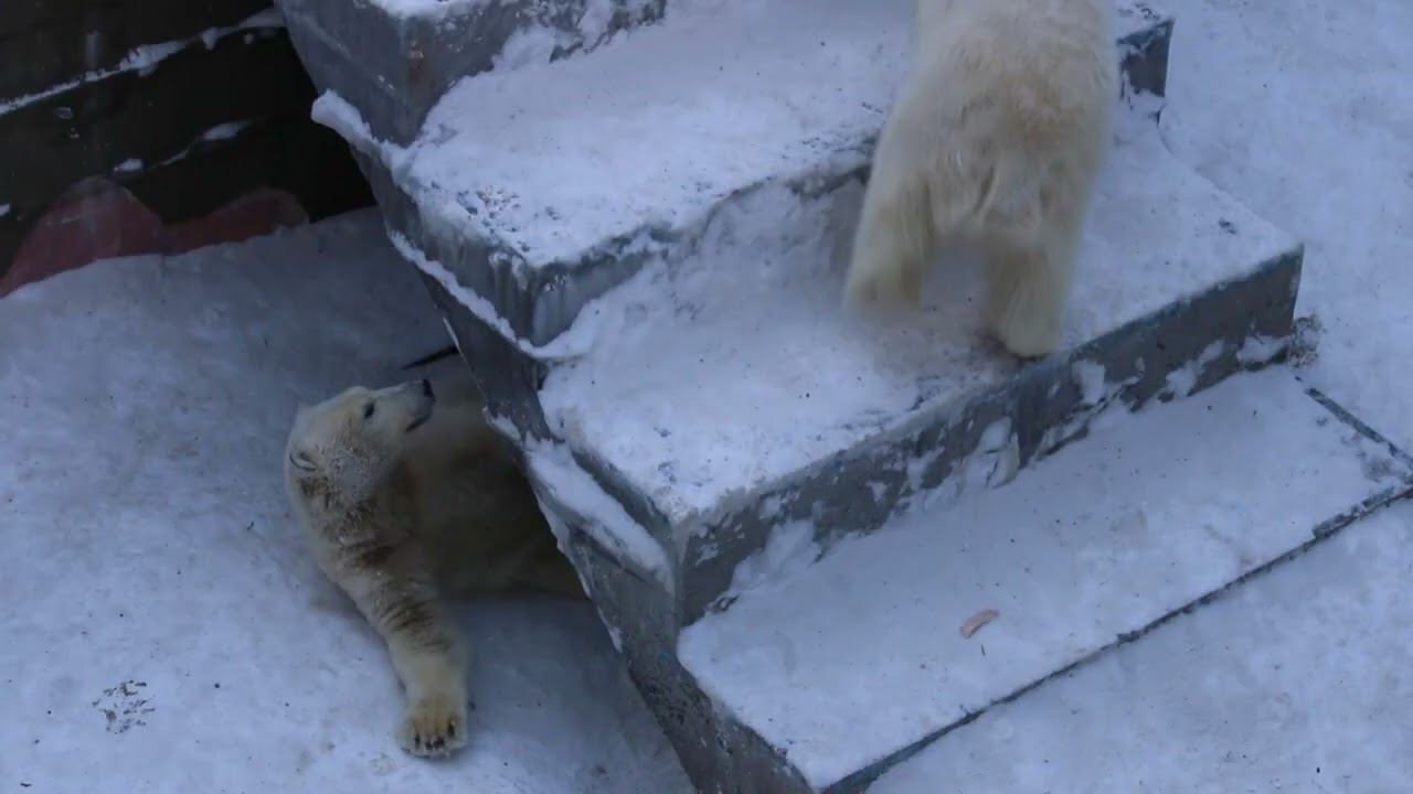 Герда родилась в Москве 20 ноября 2007 года. Её мама Симона, папа Врангель. В Новосибирск переехала 05.08.2008. В 2013 году у Герды и Кая родилась Шилка. В 2015 году она переехала в Японию. В 2015 году родился Ростик. 6 декабря 2018 года он переехал в Китай. В 2018 году родились Норди и Шайна. Данная пара молодых медведей находилась вне экспозиции зоопарка, поэтому посетители не могли их видеть. Передача молодых медведей в другой зоопарк не планируется, — ответили на запрос редакции в пресс-центре мэрии Новосибирска. Но Шайна 20 января 2024 года переехала в Ижевский зоопарк. Белые медведи одиночные животные. Как правило, миролюбивы по отношению друг к другу, но между самцами в брачный период случаются стычки. Взрослые самцы могут нападать на медвежат. Гон с марта по июнь. Продолжительность жизни — максимум 25—30 лет; в неволе рекорд долгожительства — 42 года. Вес очень крупных самцов в некоторых частях ареала 700 и даже 800 кг: есть данные о зверях весом до 1000 кг. Обычно вес меньше. Самки всегда не только меньше, но и значительно легче самцов. Так, самцы в восточной Гренландии в состоянии нормальной упитанности весят 400—450 кг, хорошо упитанные — до 500 кг, самки, даже очень сытые, здесь же редко весят больше 350—380 кг, т. е. их вес составляет около 75% веса самцов. Длина тела на 3-й день после рождения 28—32 см, средний вес — около 755 г (650—840 г). На 26-й день длина тела увеличивается незначительно — до 35—38 см, а вес возрастает до 1125—1275 г. В возрасте 60 дней самцы весят около 7 кг, самки — около 6 кг при длине тела у первых 58—60 см, у вторых 54—58 см. В возрасте 4 месяца медвежата достигают веса 22—23 кг, в 6-месячном возрасте при длине около 110 см — 40—43 кг, в 8-месячном — 58—62 кг. Длина тела в возрасте с 6 до 9 месяцев нарастает по 6—7 см в месяц. Во время зимнего сна рост почти прекращается. В зоопарке медведей кормят утром морской рыбой, хлеб с рыбьим жиром внутри, морковь, яблоки, морская капуста, яйцо дают сырое. Медвежат подкармливают молоком из соски. На ужин мясо (говядина, конина, куры или индейка). Летом и осенью арбузы, дыни, ранетки, кабачки, тыквы, огурцы. Когда показательное кормление летом бросают живую рыбу. Медвежата с медведицей находятся до 2-х лет. 16 декабря 2022 года Герда родила 2-х медвежат. И это две девочки! Имена дали 25 июня. Медвежат зовут Стрелка и Белка. Обзор вольеров белых медведей https://www.youtube.com/watch?v=mAt_b7JD0B4&list=PLGvf0V-rAHxkpGKJaWIZIUxRKgKiqV3xZ&index=17&t=0s