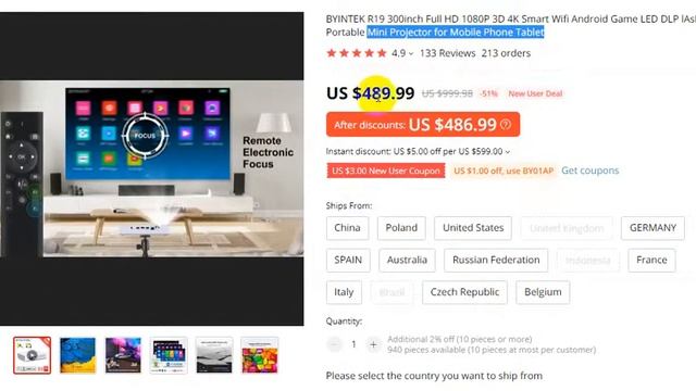 Order Details BYINTEK R19 http://alli.pub/5p9b4v (51% off) BYINTEK BT96plus https://amzn.to/3t8lY6d (AMAZON) BYINTEK R19 300inch Full HD 1080P 3D 4K Smart Wifi Android Game LED DLP lAsEr Portable Mini Projector for Mobile Phone Tablet 4.9 133 Reviews 213 orders BYINTEK BT96plus Smart Android OS WiFi Airplay DLNA Miracast Digital HD 1080P Video 1280x800 Multimedia 150'' LCD LED Projector with Bluetooth for Home Theater Cinema Subscribe for upcoming Latest Video Notifications Subscribe Link: https://bit.ly/2NXhsDA share please #10M thanks