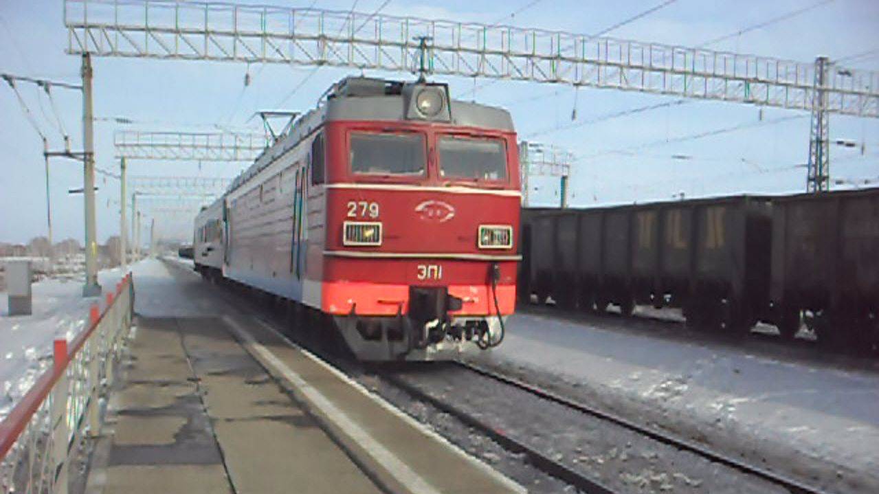 Электровоз ЭП1-279 с вагоном-дефектоскопом.