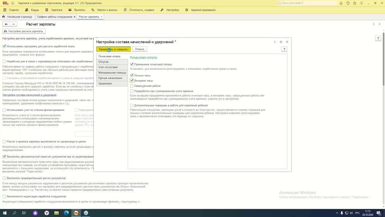 Примеры настройки графиков работы в «1С:Зарплата и управление персоналом 8» - 28.10.2020