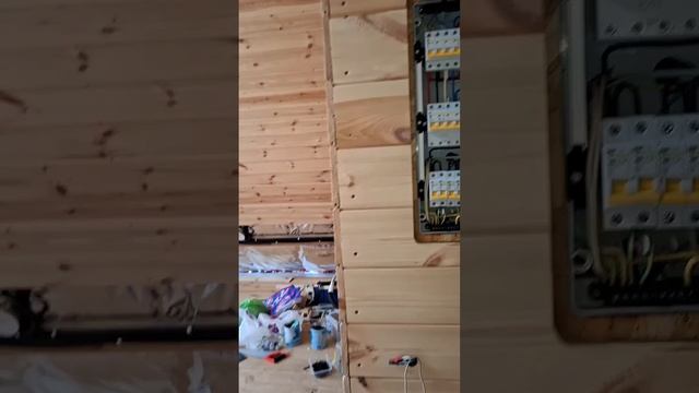 1000040127.mp4 (Собака смотрит на монтаж электропроводки (подключен. 3-х ф. розетки) в доме А-фрейм)