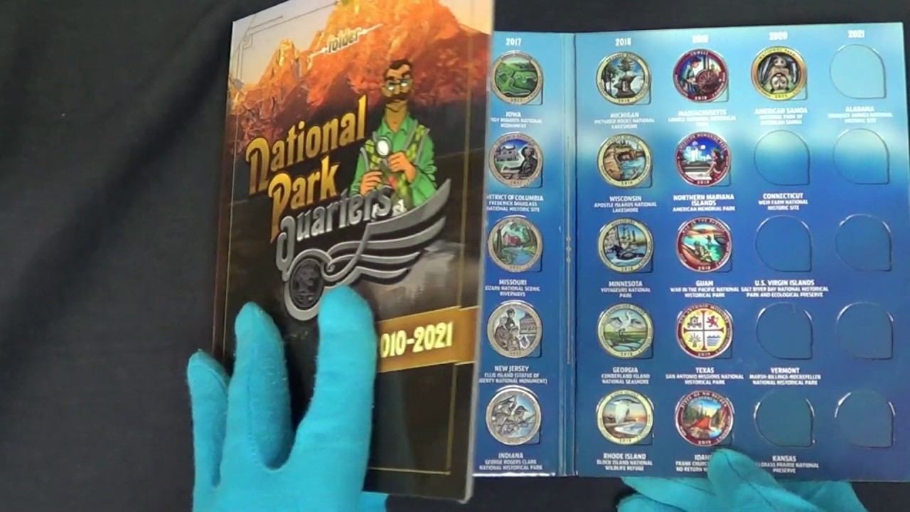 Обзор набора цветных 25 центов США Национальные парки в альбоме (51 монета)
