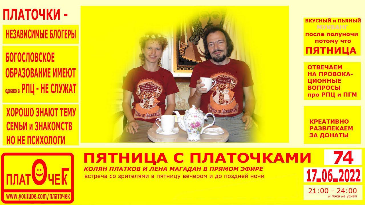Говорим обо всём, расслабляемся, выполняем прикольные задания от зрителей за донат, отвечаем на провокационные вопросы про РПЦ и ПГМ (частное мнение светских людей с Богословским образованием) по теме "церковь и общество", "религия" и "религиозные заморочки". Весело проводим пятничный вечер. #Пятница #ЗадатьВопрос #ВечерПятницы #Развлекаемся #НочнойЭфир Донат: https://donationalerts.com/r/platochekg Наш ВК: https://vk.com/kolyanplatkov Дзен: https://zen.yandex.ru/platochek Твич: https://www.twitch.tv/platocheg Трово: https://trovo.live/platocheg Остальные: https://taplink.cc/platochegk