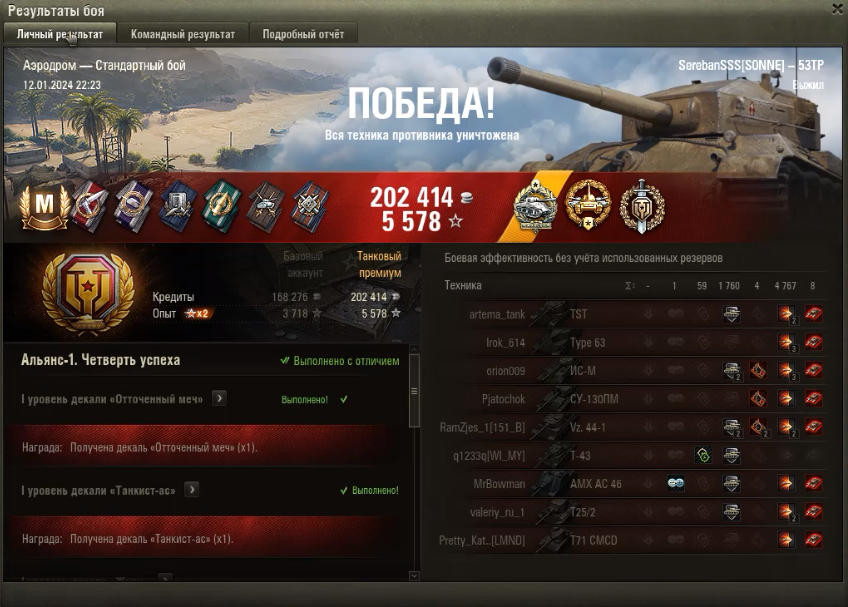 Мастер на 53TP и 8 игроков в ангаре. Титул