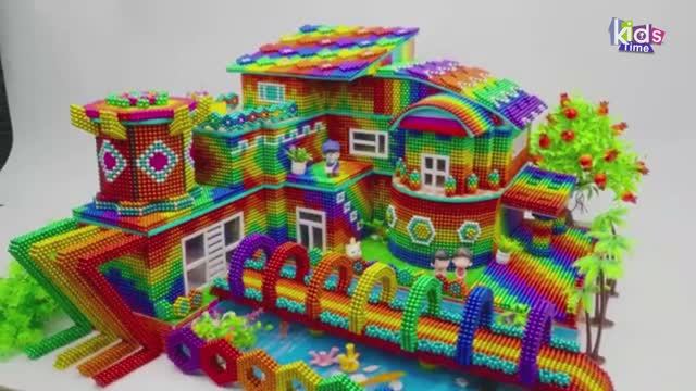 Магнитные шарики - Современное Бунгало С Радужным Мостом Над Прудом С Рыбками Из Магнитных Шариков