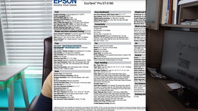 Printhead Cleaning Kit (Click Here!): https://geni.us/sponsorbpcleaningkit Epson ET 5180: https://geni.us/TehijN Epson ET 4850:https://geni.us/yXoVQ 0:00 - 2:30 Introduction/Important Info 2:30 - 4:08 Specification Sheet Explanation 4:09 - 11:33 4850 V 5180 11:34 - 12:10 Why The Epson ET 5180 is Better 12:11 - 13:45 Differences In The Specs 13:46 - 14:58 Outro Website: http://bestprinterstech.com SPEC SHEETS: Epson ET 5180 Spec Sheet: https://mediaserver.goepson.com/ImConvServlet/imconv/d1de1628e101dcce98fa4b0a7da21a660fa1003c/original?assetDescr=EcoTank_Pro_ET-5180_Printer_Specification_Sheet_CPD-60285.pdf Epson ET 4850 Spec Sheet: https://mediaserver.goepson.com/ImConvServlet/imconv/cfd1835a06c8853a2dd068b4e8d1de7332090574/original?assetDescr=EcoTank_ET-4850_Black_Printer_Specification_Sheet_CPD-60635R1.pdf 2021 Imac: https://geni.us/y7KnR Disclaimer Some links may be linked to an affiliate marketing account and Best Printers may take a small commission for any products you purchase. We are not sponsored and companies do not provide products that we review. All products on our channel have been purchased. All Links above are resources to either a cleaning kit, printer, ink or other items/ services that we hope are helpful to you as the consumer. We wish you the best of luck with your printer repair and product purchase! © 2023 Best Printers