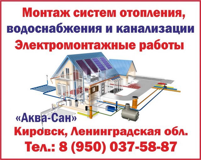 "Аква-Сан": продажа и монтаж систем отопления, водопровода и канализации,в Кировске Ленингр. области