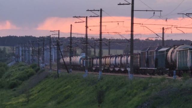 Грузовой поезд грохочет на всю долину! ВЛ10у-581+370 с грузовым поездом на выходе со ст. Проня