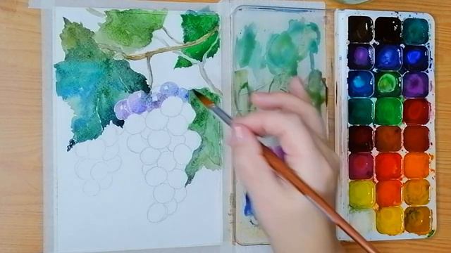 Просто и реалистично Лёгкое рисование для начинающих Веточка винограда Акварель