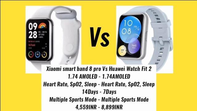 Xiaomi smart band 8 pro Vs Huawei Watch Fit 2, Huawei Watch Fit 2 Vs Xiaomi Smart Band 8 Pro, Xiaom