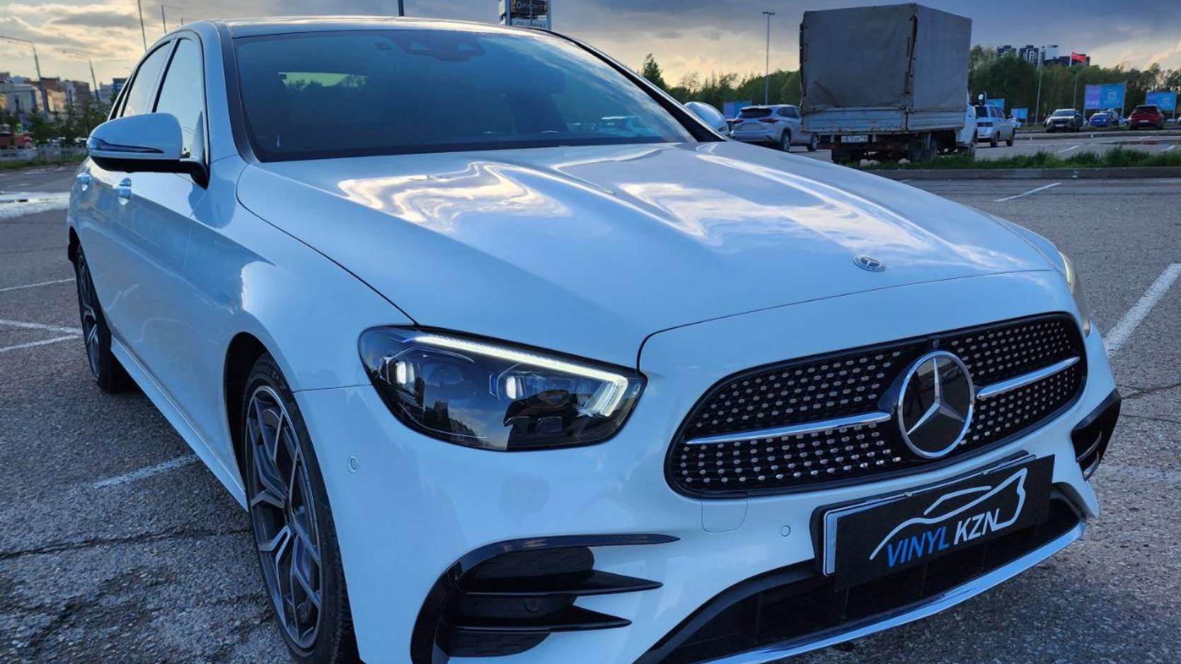 Автостудия VinylKZN Наш сайт: https://vinylkzn.ru/ Mercedes Benz Е-class - забронировали прозрачной полиуретановой плёнкой передние фары, значок, под ручками и зона погрузки. Сделали антихром молдингов вокруг окон, молдинга на крышке багажника. Оклеили крышу в чёрный глянец. Установили диффузор на задний бампер и спойлер на крышку багажника.