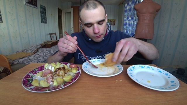 МУКБАНГ/АСМР КАРТОШКА С САРДЕЛЬКАМИ /ЯИЧНИЦА/ СОУС-АДЖИКА,МАЙОНЕЗ/БАГЕТ/УЖИН/EATING/ASMR/Mukbang#355