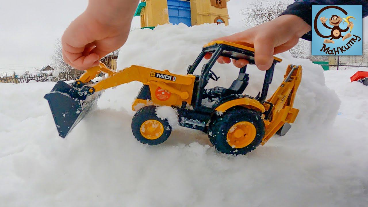 Машинки Игрушки Bruder. Строим дорогу в снегу - Экскаватор, самосвал и погрузчик. Манкиту