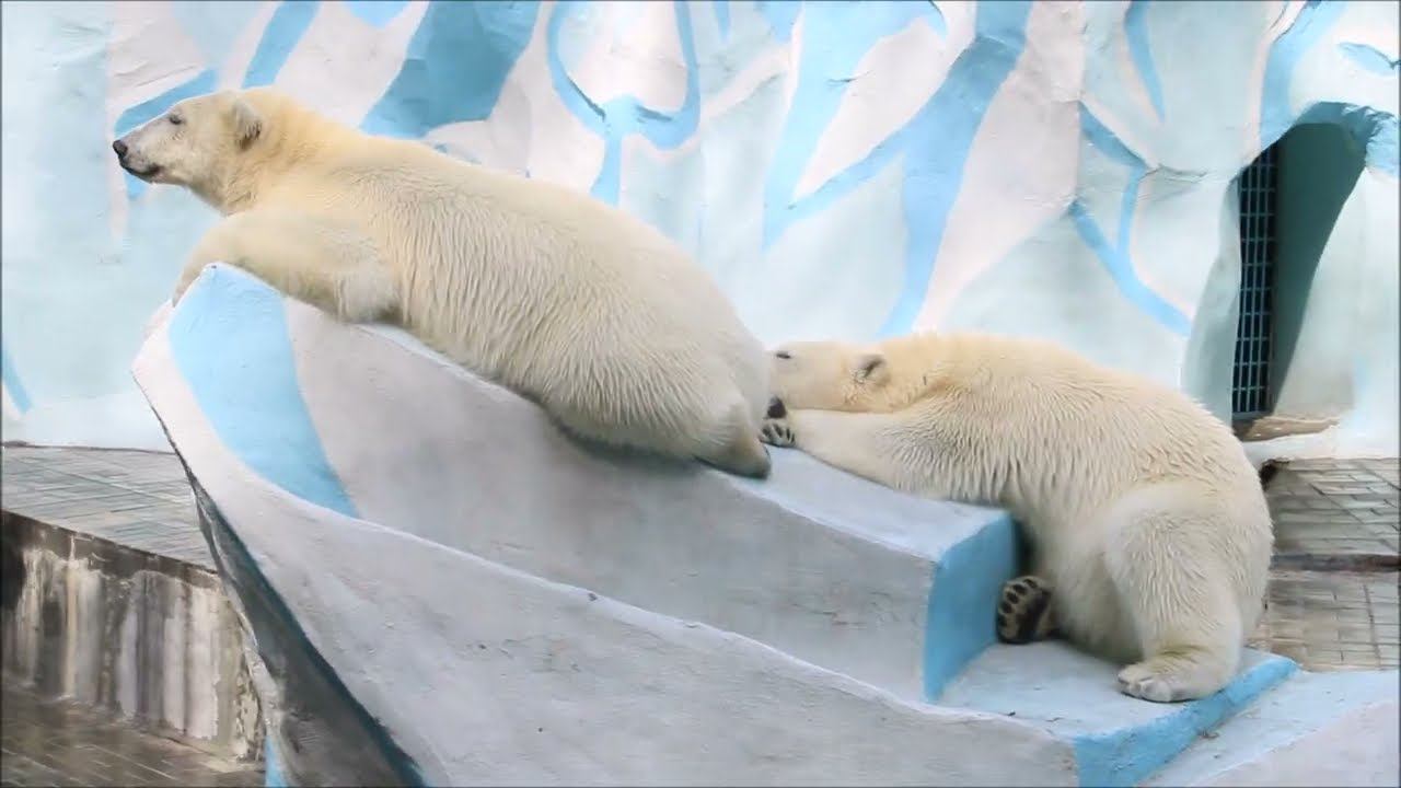 Герда родилась в Москве 20 ноября 2007 года. Её мама Симона, папа Врангель. В Новосибирск переехала 05.08.2008. В 2013 году у Герды и Кая родилась Шилка. В 2015 году она переехала в Японию. В 2015 году родился Ростик. 6 декабря 2018 года он переехал в Китай. В 2018 году родились Норди и Шайна. Данная пара молодых медведей находилась вне экспозиции зоопарка, поэтому посетители не могли их видеть. Передача молодых медведей в другой зоопарк не планируется, — ответили на запрос редакции в пресс-центре мэрии Новосибирска. Но Шайна 20 января 2024 года переехала в Ижевский зоопарк. Белые медведи одиночные животные. Как правило, миролюбивы по отношению друг к другу, но между самцами в брачный период случаются стычки. Взрослые самцы могут нападать на медвежат. Гон с марта по июнь. Продолжительность жизни — максимум 25—30 лет; в неволе рекорд долгожительства — 42 года. Вес очень крупных самцов в некоторых частях ареала 700 и даже 800 кг: есть данные о зверях весом до 1000 кг. Обычно вес меньше. Самки всегда не только меньше, но и значительно легче самцов. Так, самцы в восточной Гренландии в состоянии нормальной упитанности весят 400—450 кг, хорошо упитанные — до 500 кг, самки, даже очень сытые, здесь же редко весят больше 350—380 кг, т. е. их вес составляет около 75% веса самцов. Длина тела на 3-й день после рождения 28—32 см, средний вес — около 755 г (650—840 г). На 26-й день длина тела увеличивается незначительно — до 35—38 см, а вес возрастает до 1125—1275 г. В возрасте 60 дней самцы весят около 7 кг, самки — около 6 кг при длине тела у первых 58—60 см, у вторых 54—58 см. В возрасте 4 месяца медвежата достигают веса 22—23 кг, в 6-месячном возрасте при длине около 110 см — 40—43 кг, в 8-месячном — 58—62 кг. Длина тела в возрасте с 6 до 9 месяцев нарастает по 6—7 см в месяц. Во время зимнего сна рост почти прекращается. В зоопарке медведей кормят утром морской рыбой, хлеб с рыбьим жиром внутри, морковь, яблоки, морская капуста, яйцо дают сырое. Медвежат подкармливают молоком из соски. На ужин мясо (говядина, конина, куры или индейка). Летом и осенью арбузы, дыни, ранетки, кабачки, тыквы, огурцы. Когда показательное кормление летом бросают живую рыбу. Медвежата с медведицей находятся до 2-х лет. 16 декабря 2022 года Герда родила 2-х медвежат. И это две девочки! Имена дали 25 июня. Медвежат зовут Стрелка и Белка. Обзор вольеров белых медведей https://www.youtube.com/watch?v=mAt_b7JD0B4&list=PLGvf0V-rAHxkpGKJaWIZIUxRKgKiqV3xZ&index=17&t=0s