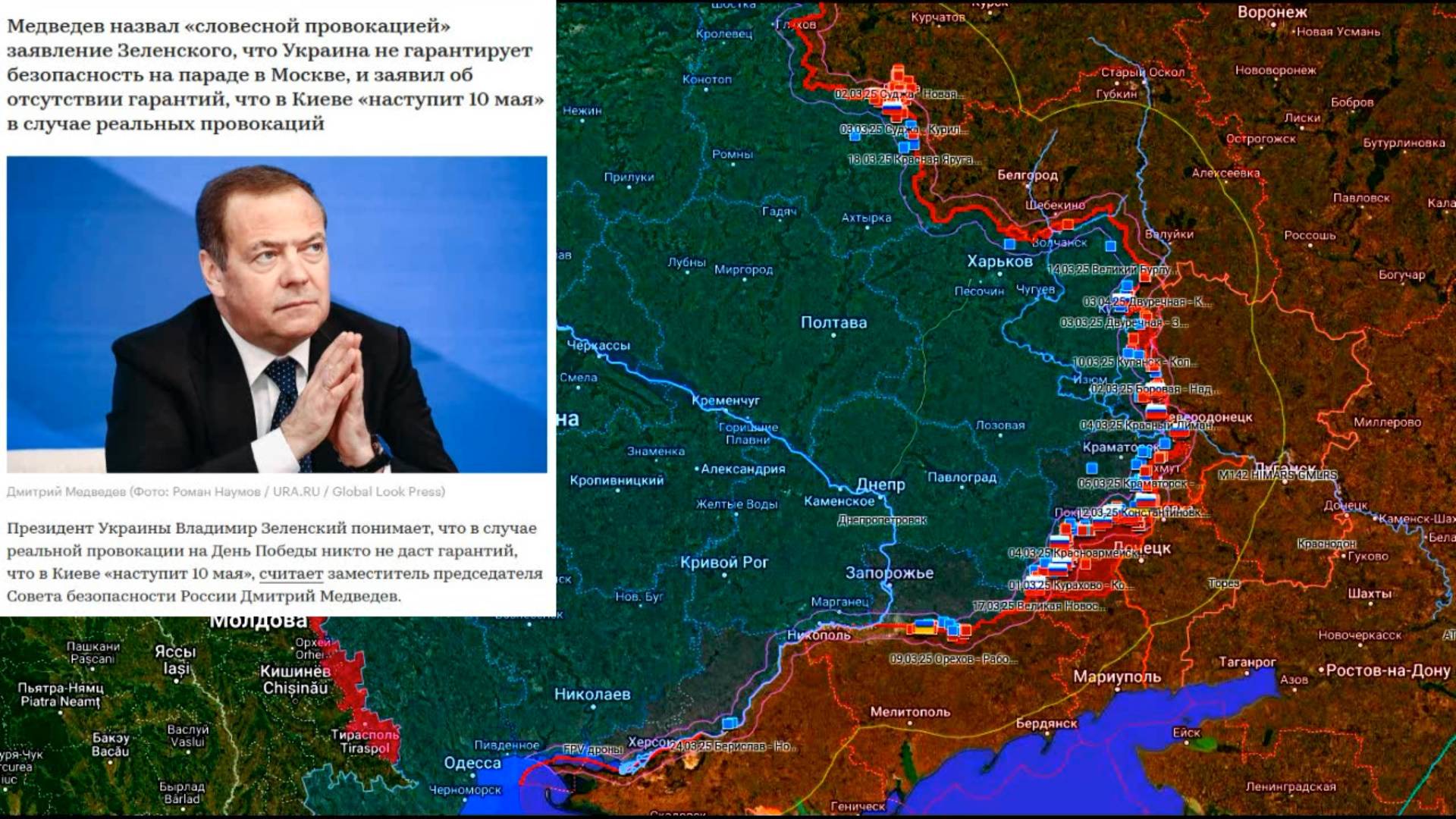 Карта боевых действий. Медведев предупредил Зеленского о последствиях возможных провокаций 9 мая