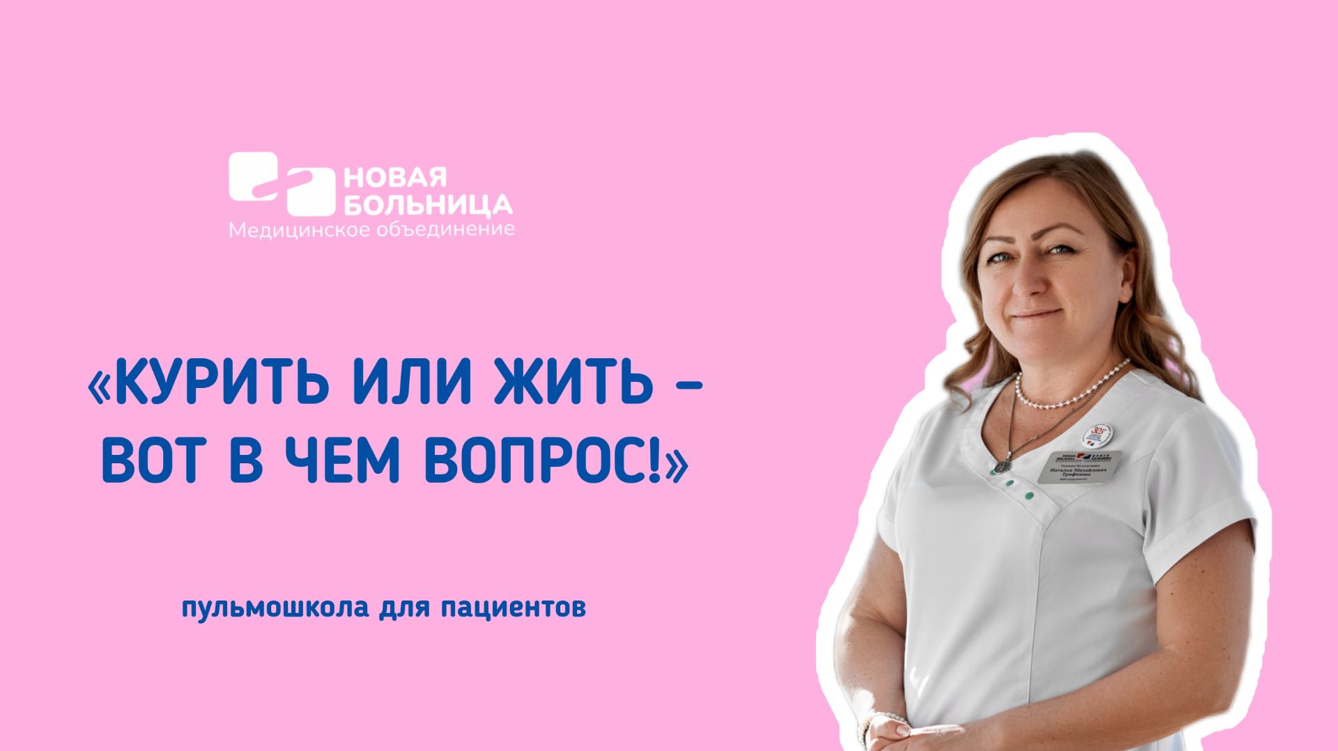 Цикл занятий по проблеме курения: готова запись первого вебинара с врачом-пульмонологом, аллергологом «Новой больницы», к.м.н. Трифановой Натальей Михайловной. Напоминаем, что записаться на консультацию к пульмонологу и другим специалистам «Новой больницы» можно по телефону +7 (343) 355-56-57 или на сайте newhospital.ru