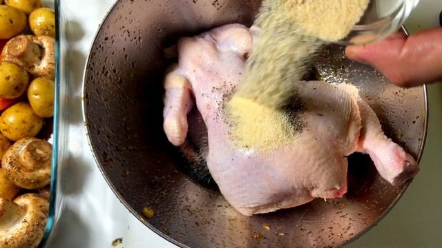ОВОЩИ запеченные под КУРИЦЕЙ и БЕЗ НЕЕ в духовке / простой рецепт Ингредиенты: 1 курица 0,5-1 кг мелкий картофель 3 моркови 200 г шампиньонов 1-2 шт кукурузы 50 мл соевого соуса 50 мл оливкового масла Специи: сушеный базилик, чёрный перец, копченая паприка, гранулированный чеснок, прованские травы. Приготовление: 1. Для начала крупно нарежем кукурузу и морковь, к ним добавим картофель, шампиньоны, польем все соевым соусом и добавим наши специи: сушеный базилик, чёрный перец, гранулированный чеснок, оливковое масло и хорошо все перемешаем и выкладываем в форму. 2. Курицу разрезаем посередине грудки и маринуем чёрным перцем, гранулированным чесноком, прованскими травами, копченой паприкой, соевым соусом и оливковым маслом. Маринуем в течении 30 минут и выкладываем на наши овощи. 3. Запекаем полтора часа в разогретой до 180 градусов духовке. И все наш вкусный обед ГОТОВ! Приятного аппетита, мои друзья! подписывайтесь на канал, будет еще много вкусных видео! инстаграмм https://www.instagram.com/soslan_v_sibir/ телеграмм https://t.me/soslansfood
