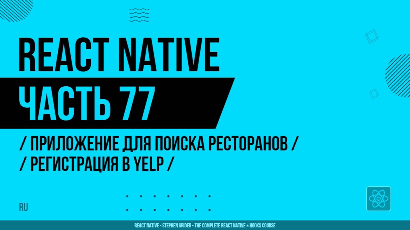 React Native - 077 - Приложение для поиска ресторанов - Регистрация в Yelp