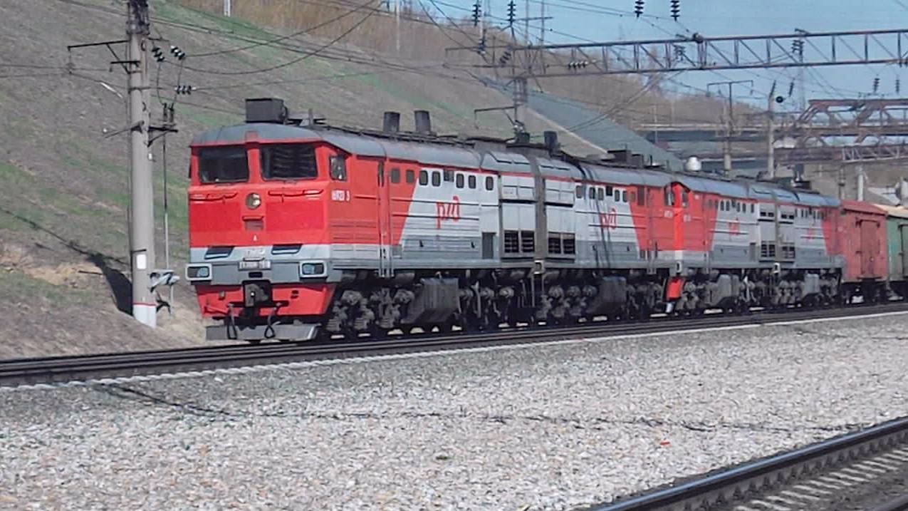 Тепловозы 2ТЭ10М-2618 и 2ТЭ10М-3073. Двойная тяга на подъёме.