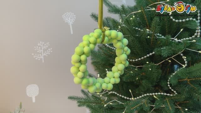 334427 Украшение елочное Венок бархатный матовый зеленый 12см