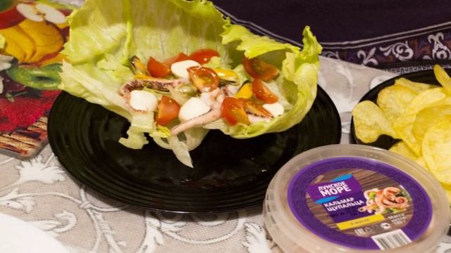 Салат из кальмаров и мидий с чипсами Жемчужина моря