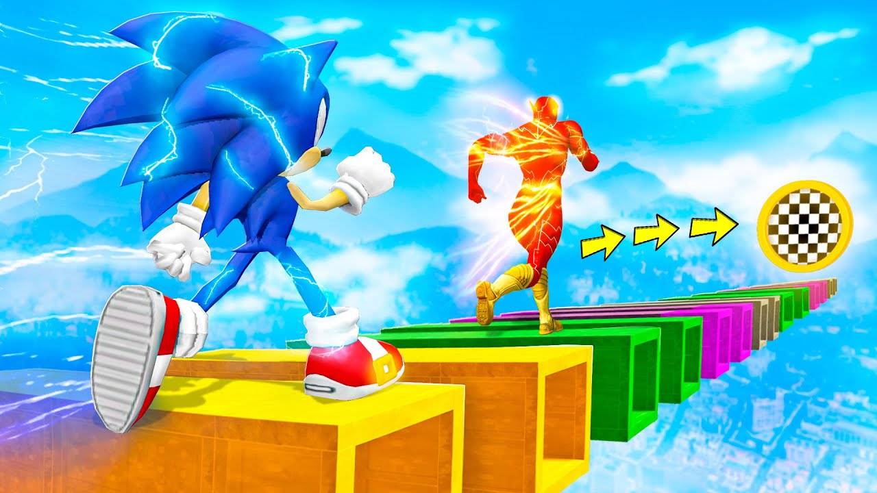 КАК ДАЛЕКО СОНИК И ФЛЭШ СМОГУТ ПРОБЕЖАТЬ ПО СЛОМАННОЙ ДОРОГЕ ? - ЭКСПЕРИМЕНТ В ГТА 5