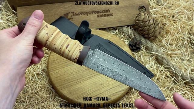 Нож «Пума» - атмосферостойкий дамаск, береста текстолит