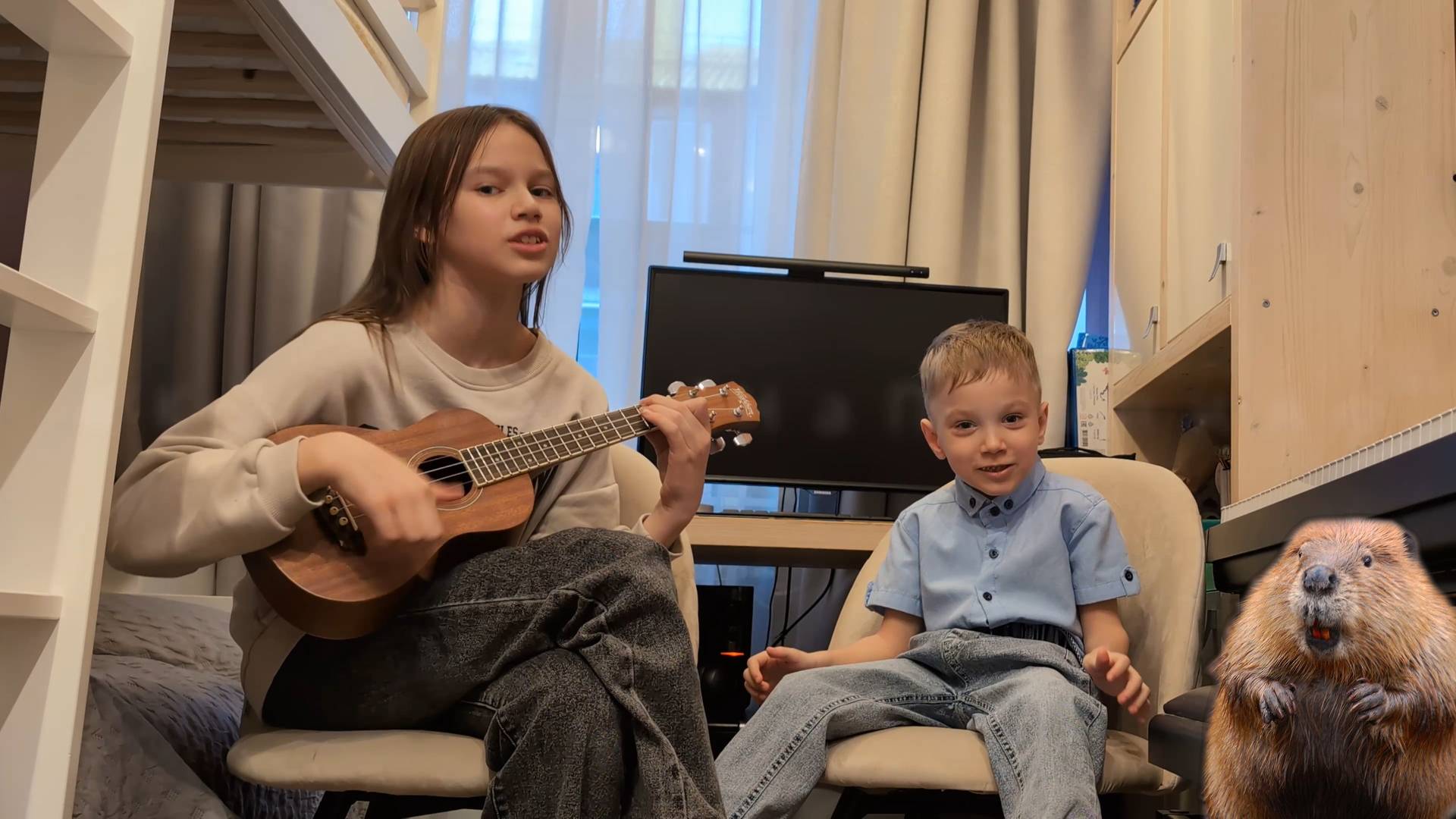 Кавер на песню "Бобер" Славы Скрипки. Я играю на укулеле, а мой братик Андрюша поет. #КатеринаНаПианино