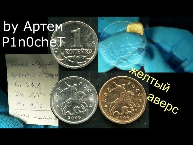 Необычнейшая монета, пока известный 3й экземпляр. Наиболее вероятно: две плакировки обычного листа для монет, из которого вырубают заготовки, штатная МН19 и поверх нее Л90 от 10 и 50 копеек. Результаты спектрального анализа: Cu 93,1% Zn 5,5% Ni 0,92% Все три известные монеты 1 копейка 2008 М выловлены в Москве из обращения. Вот такие чудеса встречаются в реальном обороте - ищите и найдете, всем удачи! Ссылка на покупку различных современных копеек: http://coinsmoscow.ru/c2257 Каталог ВСЕХ современных монет и СССР: http://coinsmoscow.ru/p705 Наши соц сети (подпишитесь, на случай если канал заблокируют, смотрите в них ссылку на новый канал. А так же в соц сетях дополнительная информация о монетах): http://vk.ru/coinsmoscow http://instagram.com/coinsmoscow