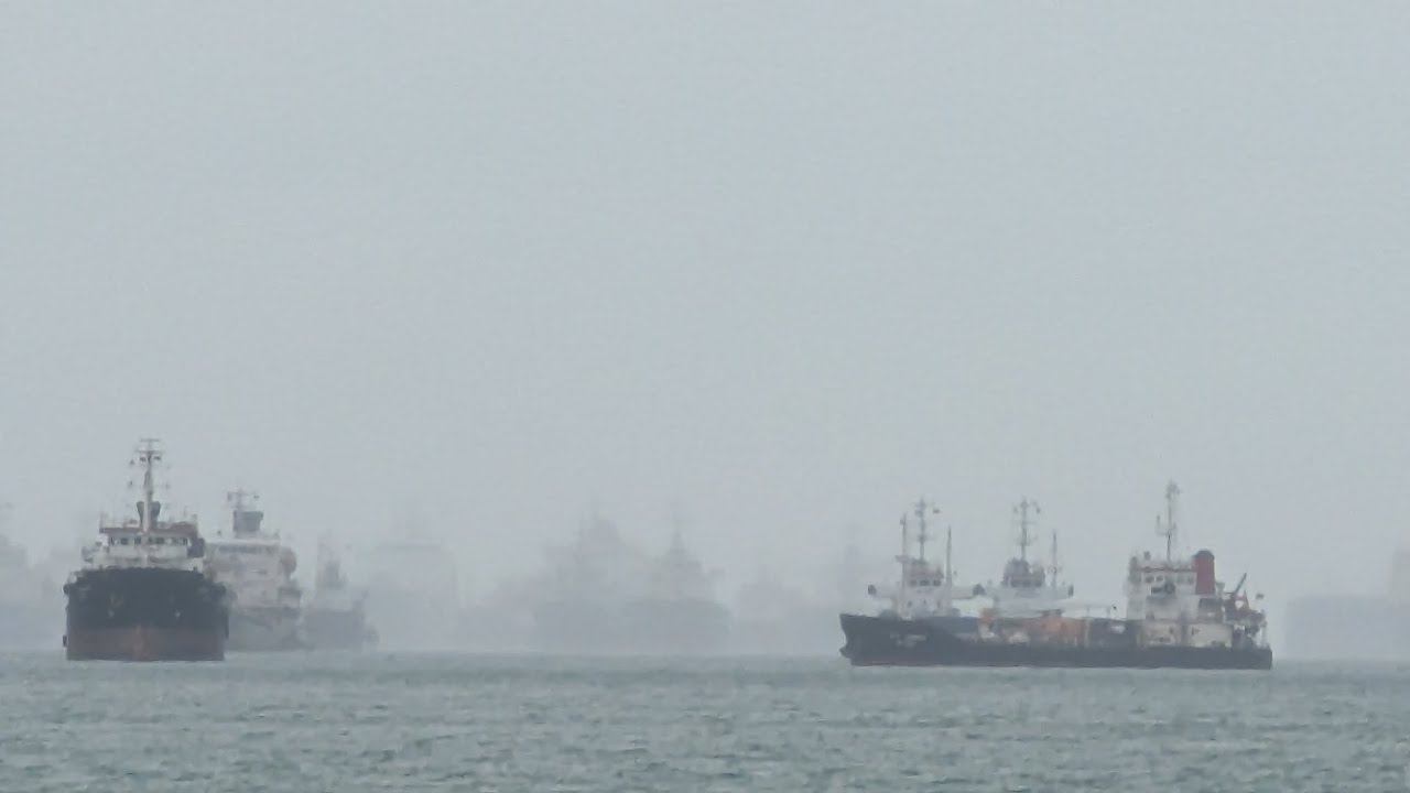 Сингапурский пролив. Корабли на рейде. Пригодно ли южно-китайское море для купания? Пляж и пальмы!