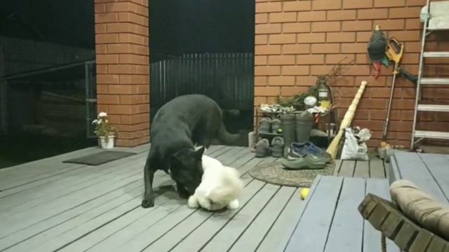 собаки развлекаются вечером.