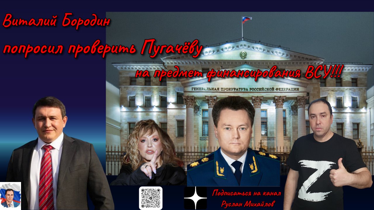 Руслан Михайлов политобозреватель сказал свое личное мнение. Виталий Бородин попросил проверить Пугачеву на предмет финансирования ВСУ! Глава Федерального проекта по безопасности и борьбе с коррупцией Виталий Бородин попросил Генпрокуратуру проверить певицу Аллу Пугачёву на предмет финансирования ВСУ. Алла Пугачева покинула Россию и проживает в Израиле, ее муж Максим Галкин признан иноагентом в России. ссылка на источник https://russian.rt.com/russia/news/1135235-pugachyova-finansirovanie-vsu?utm_source=yxnews&utm_medium=desktop Поддержка канала ЮMoney 4100117815002119 карта сбер банк 2202202311864023 подписывайтесь на мои каналы на вк vk.com/id558285967 группа на вк vk.com/club202827331 мой телеграмм канал https://t.me/ruslnmikhailov мой дзен канал https://dzen.ru/video/watch/6436a2ebb7328f52f5061620